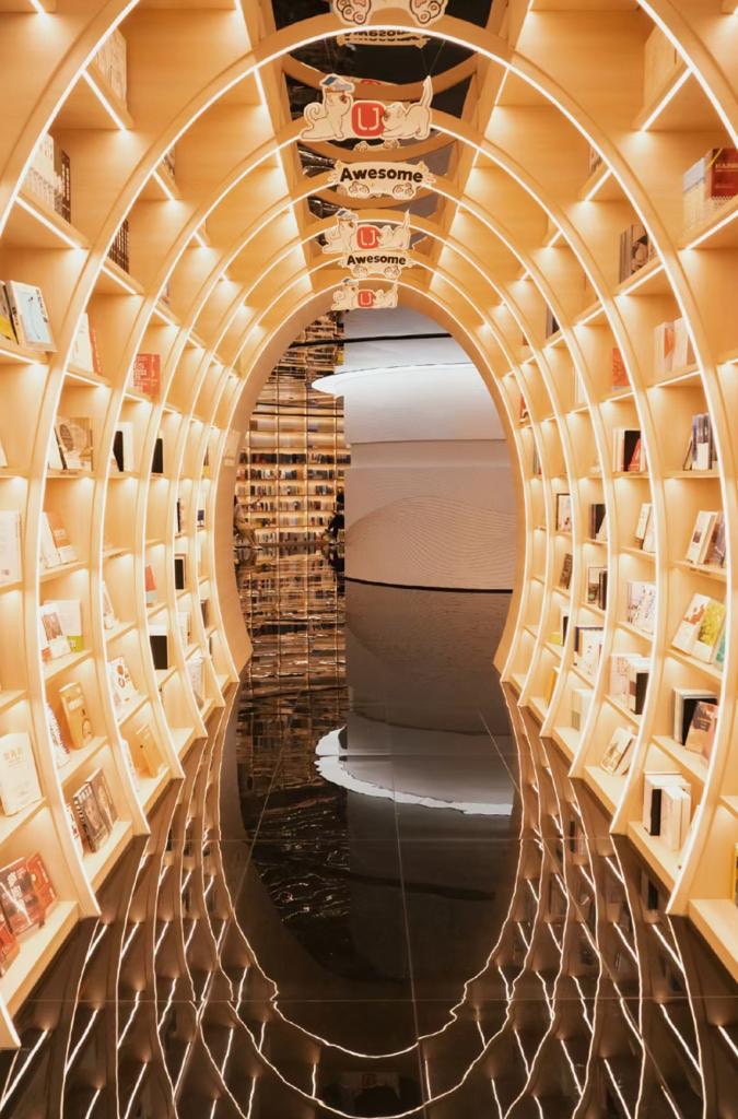 書院佔地2,000-4,000平方米,超魔幻的鏡像世界,彷彿來到了哈利波特書院。書店整體風格偏酷炫、科幻風。書院設有SHINE’BAR和TEA·SHINE兩大特色空間。其中SHINE’BAR有露天影院及無邊水境。