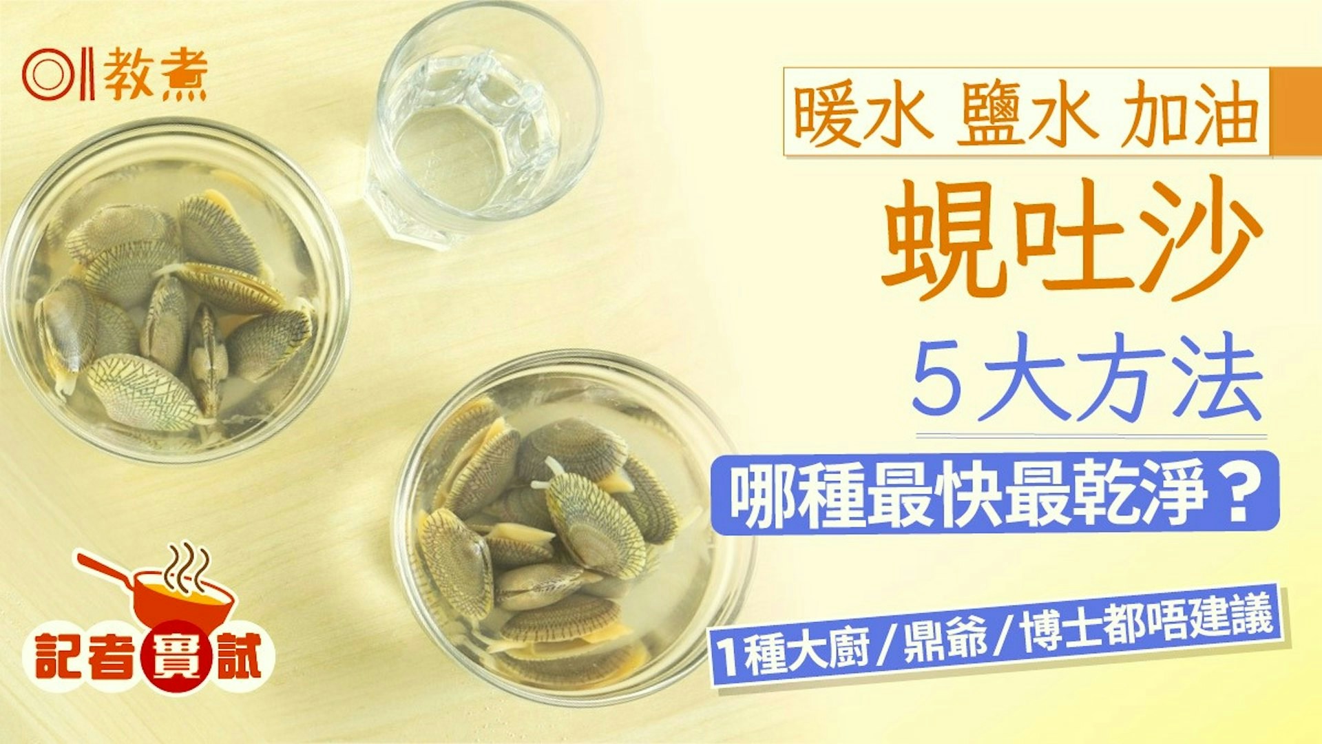 不過炒蜆之前,有一個步驟非常重要,便是蜆吐沙。若然蜆隻未能徹底吐沙,即使有多美味,也只會大殺風景。今次我用了鹽水吐沙,但除了放鹽,坊間讓蜆吐沙的方法有很多,有用暖水、放鹽、放油也有,究竟哪種最實用有效?